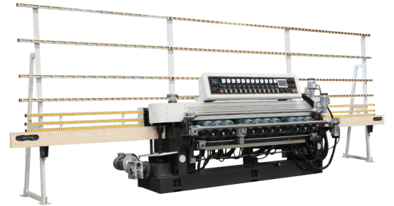 The 11-Motor Glass Beveling Edging Machine is a highly efficient glass processing equipment primarily used for straight beveling and round bottom edge processing of flat glass. It can complete rough grinding, fine grinding, and polishing processes in a single operation, making it suitable for applications in the construction, decoration, and decorative glass industries. Equipped with 11 motor, it offers high processing efficiency; it ensures high precision, guaranteeing smooth edges and straightness; its sturdy and durable structure is easy to operate, supporting adjustable processing speed, angle, and dimensions to accommodate different thickness requirements.
